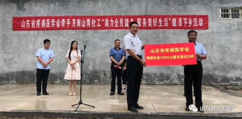 2020年6月18日,山东省疼痛医学会在菏泽市定陶区孟海镇车刘村开展“助力全民健身·服务美好生活”健康帮扶活动,向车刘村捐赠价值1.5万元的健身体育器械20件和健身捶150件,并指导村民正确使用健身器材。本次活动得到村民一致好评,进一步帮助村民树立科学健康理念,提高人民群众的获得感、幸福感、安全感。