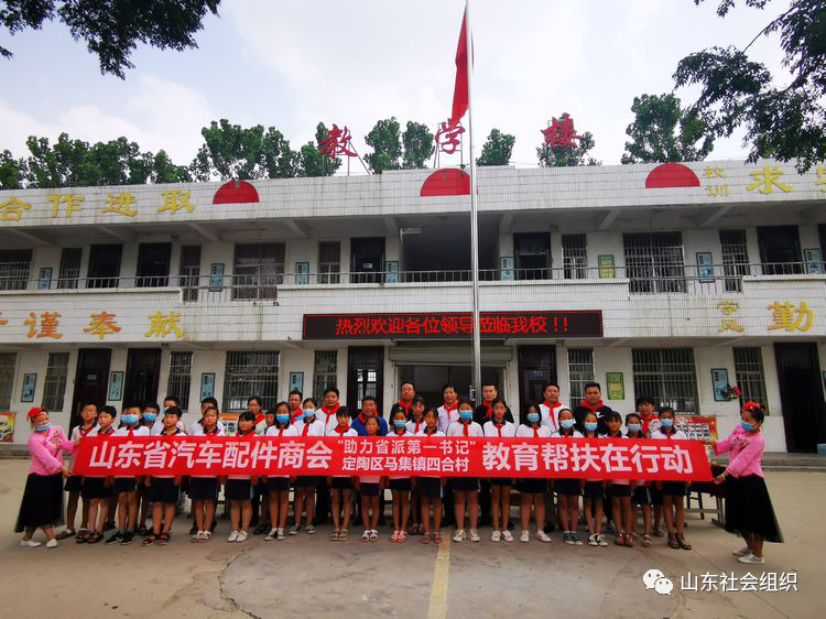 2020年6月21日,山东省汽车配件商会在菏泽市定陶区马集镇四合村开展教育帮扶活动,为当地孩子们送去了书包、彩笔文具、篮球、足球、乒乓球、水杯等学习体育用品,价值2.2万元,帮助孩子们更好地学习和成长。