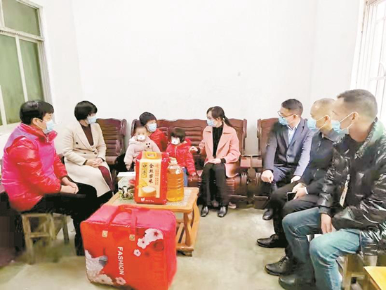 卢敏(右)到三海街道慰问“两癌”患病妇女,了解患者近况。