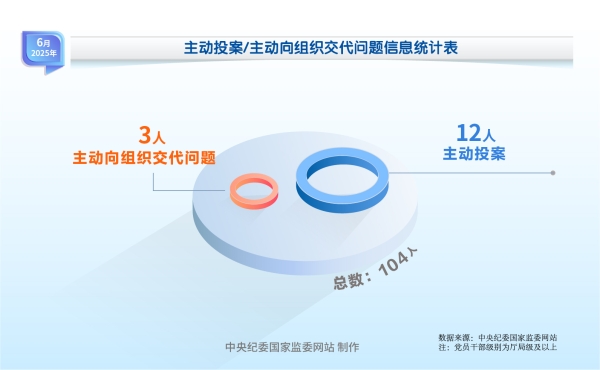 2025年6月,中央纪委国家监委网站发布的审查调查信息中,12名党员领导干部主动投案,3名党员领导干部主动向组织交代问题。四、被处分党员领导干部均存在违反廉洁纪律和违反中央八项规定精神问题